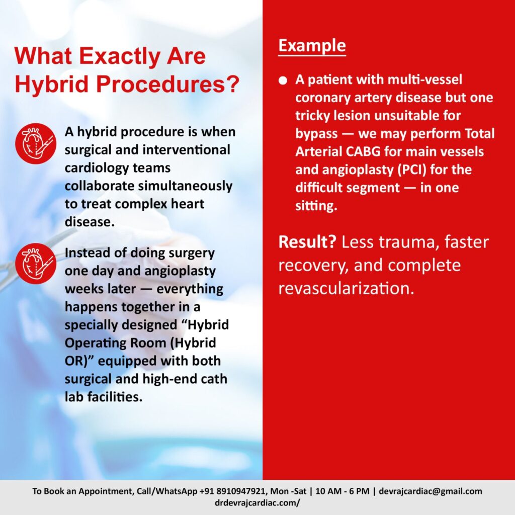 A patient with multi-vessel coronary artery disease but one tricky lesion unsuitable for bypass — we may perform Total Arterial CABG for main vessels and angioplasty (PCI) for the difficult segment — in one sitting.