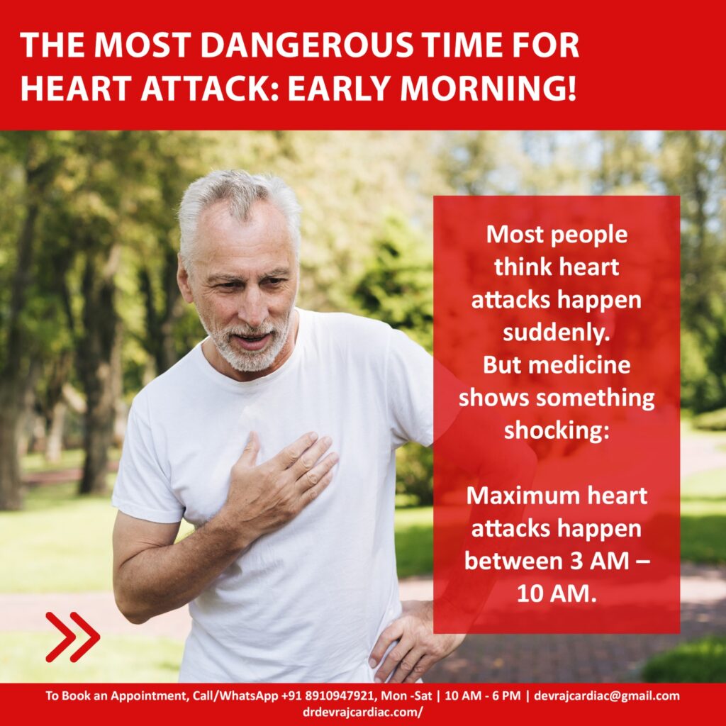 ⏰ Maximum heart attacks happen between 3 AM – 10 AM.