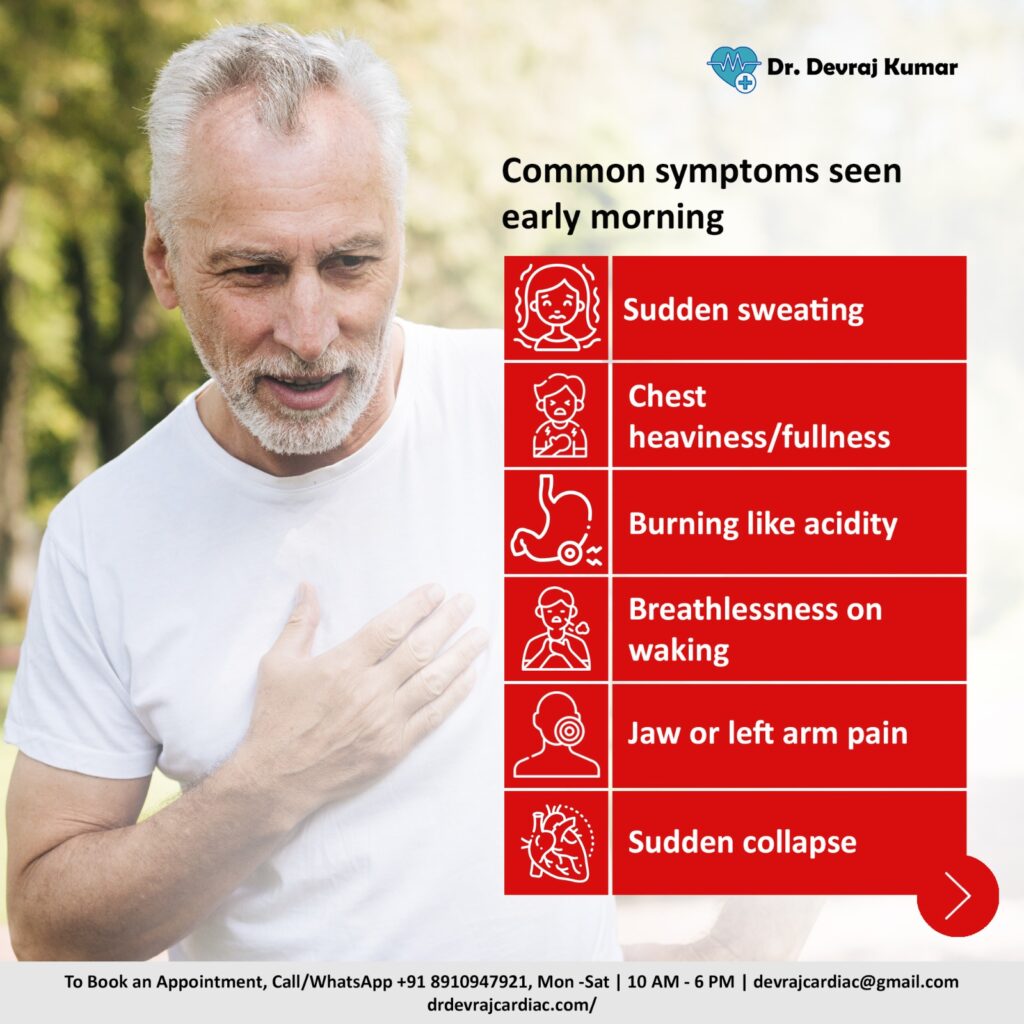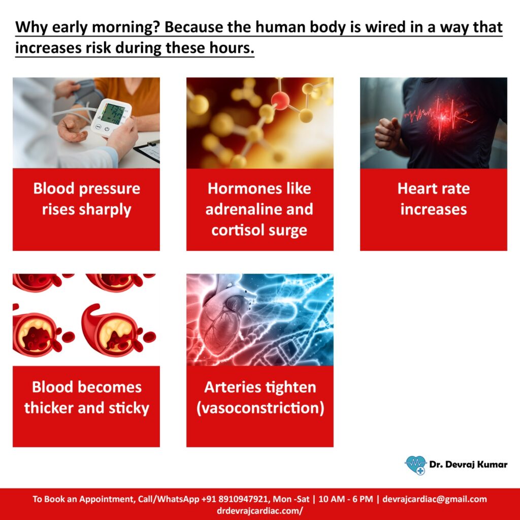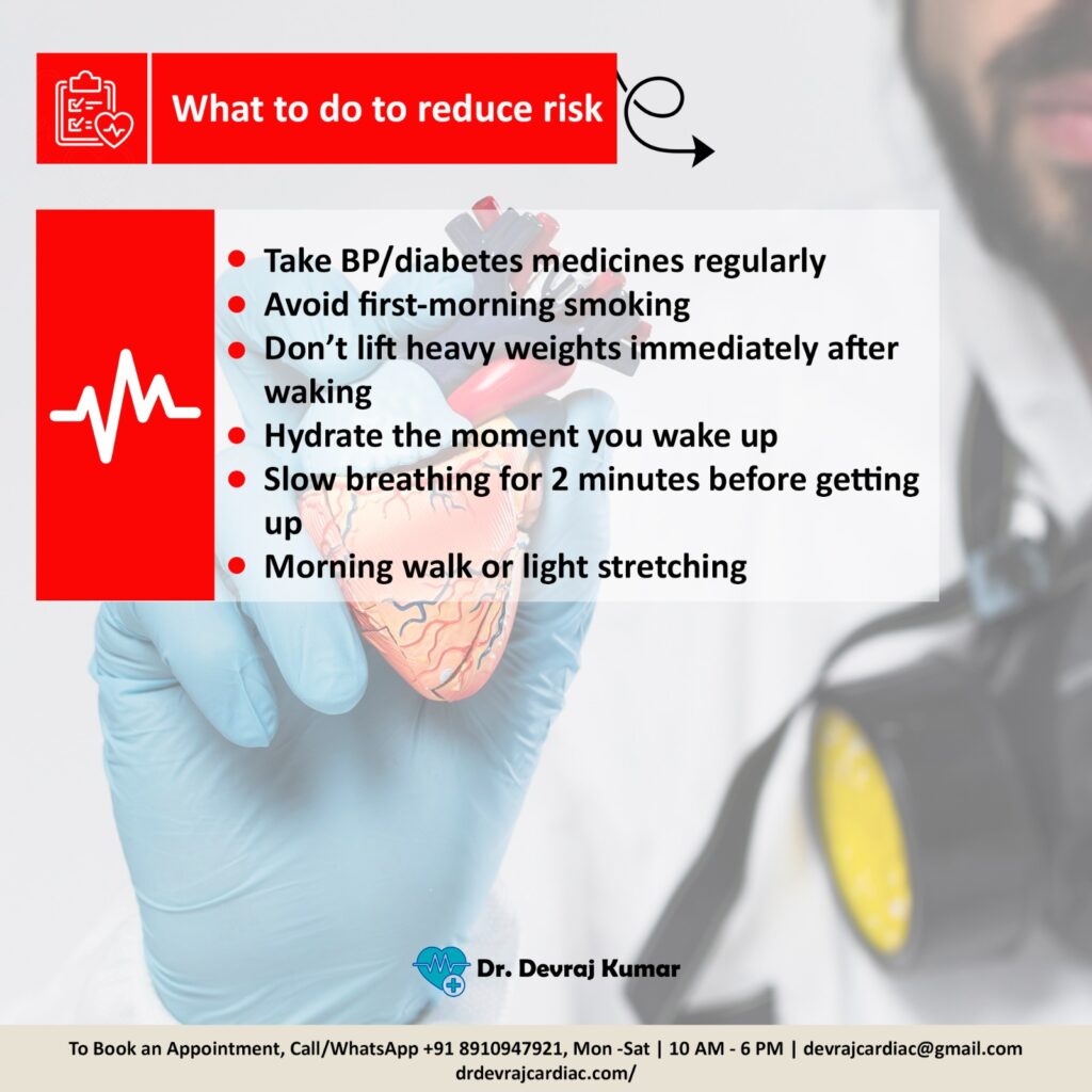 ❗ People with high risk (diabetes, hypertension, smokers, obesity, family history) are more vulnerable early morning.